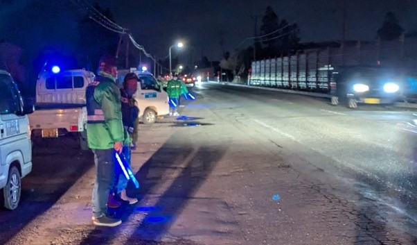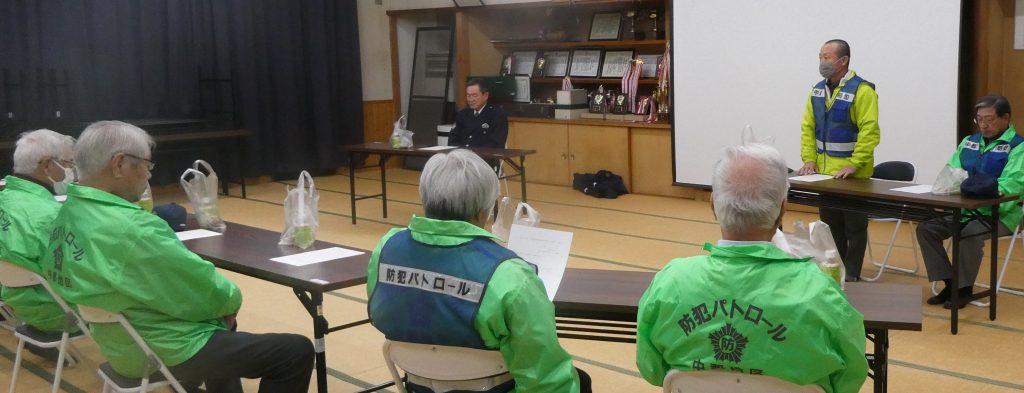 活動に先立つ出発式では、髙橋会長からパトロールにあたって隊員への労いの言葉、そして川西駐在所佐藤巡査部長さんからは「冬期間になり早めのライト点灯で安全を確保しましょう」と午後4時には車のライト点灯の励行をアドバイスいただきました。